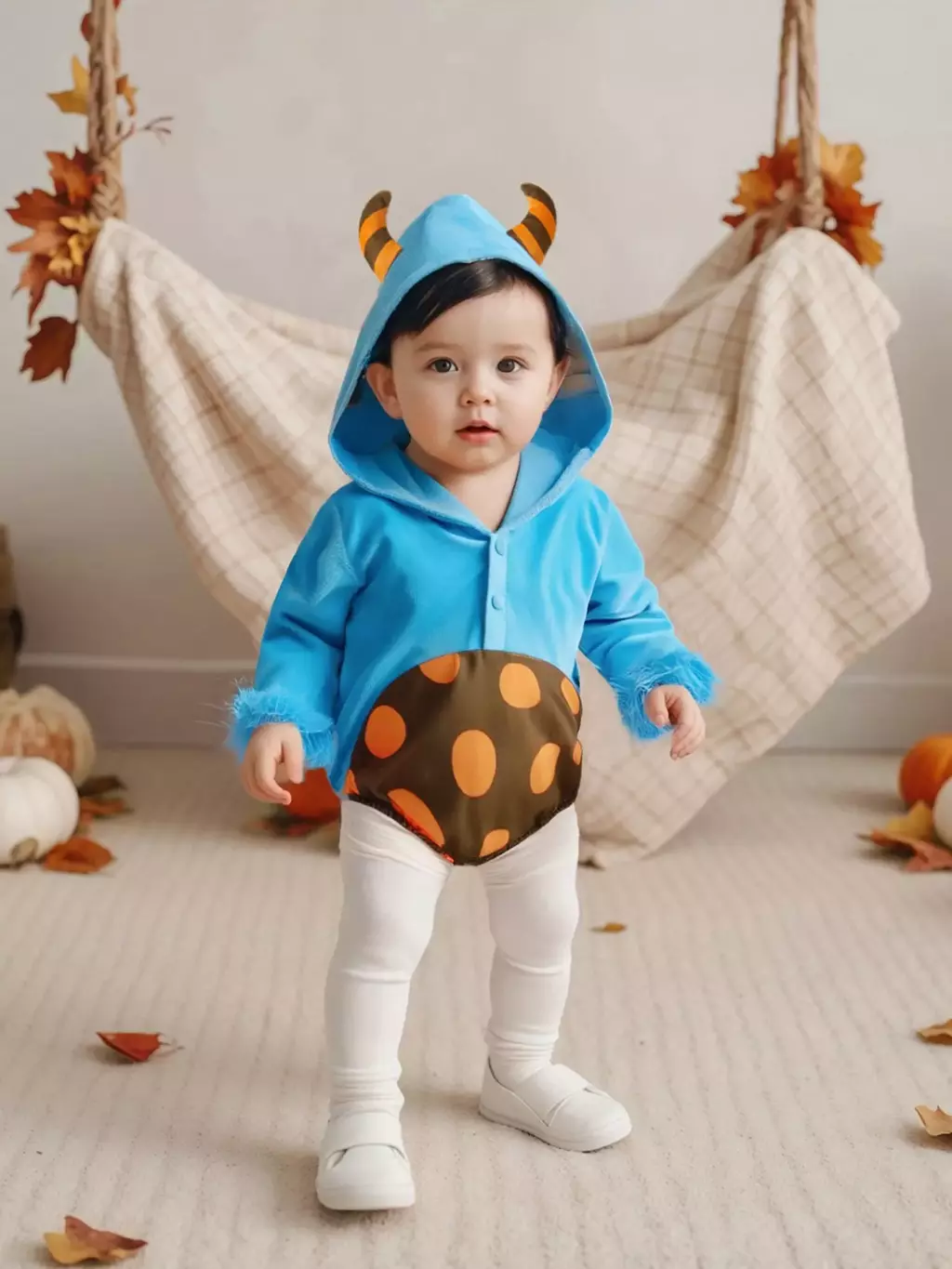 Os detalhes do Fantasia Body Bebê Monstrinho Azul são simplesmente encantadores! Com aplicação de olhinhos e dentinhos no capuz, além de costuras divertidas que remetem a um monstrinho simpático, este conjunto vai proporcionar momentos de diversão e fofura sem igual. Seu bebê vai conquistar corações e arrancar sorrisos por onde passar! 😍