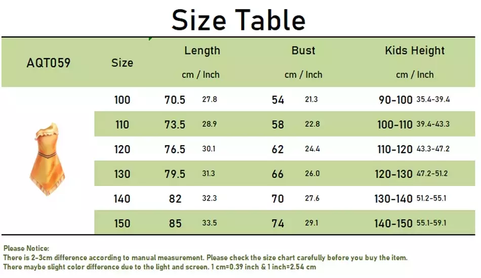 Para garantir o ajuste perfeito, o Vestido Fantasia Pocahontas está disponível em diversos tamanhos, desde o 2 até o 10. Assim, independente da idade da sua pequena, ela poderá desfrutar desse traje maravilhoso e se sentir como a própria Pocahontas! Escolha entre os tamanhos 2, 3, 4, 5-6, 7-8 e 9-10 para encontrar o tamanho ideal.