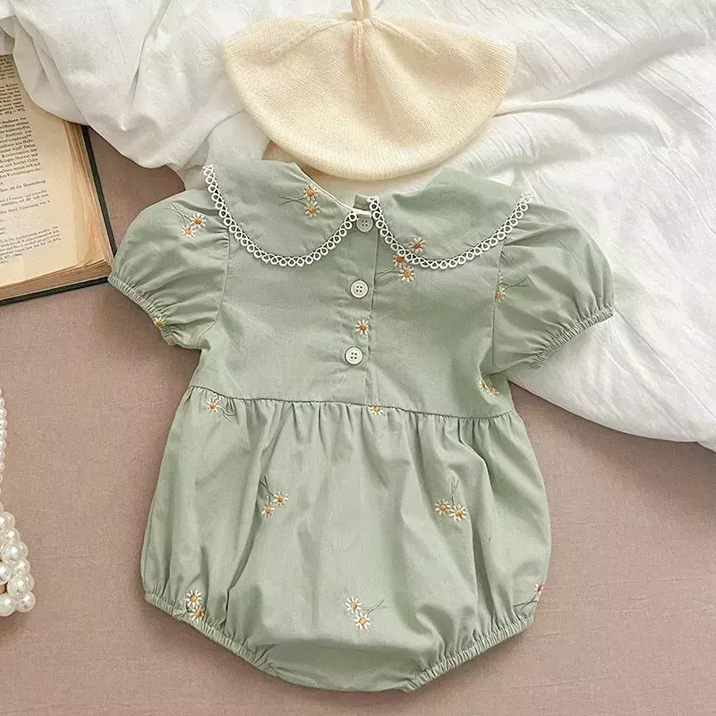 Disponível nas cores Verde e Bege, nosso Macacão com Bordado de Margaridas Bebê é versátil e fácil de combinar com outras peças do guarda-roupa do seu pequeno(a). Além disso, oferecemos diferentes opções de tamanhos para que você possa encontrar o ajuste perfeito: 3M, 6M, 12M e 18-24M. Assim, seu bebê pode aproveitar todo o estilo e conforto em cada fase do seu crescimento.