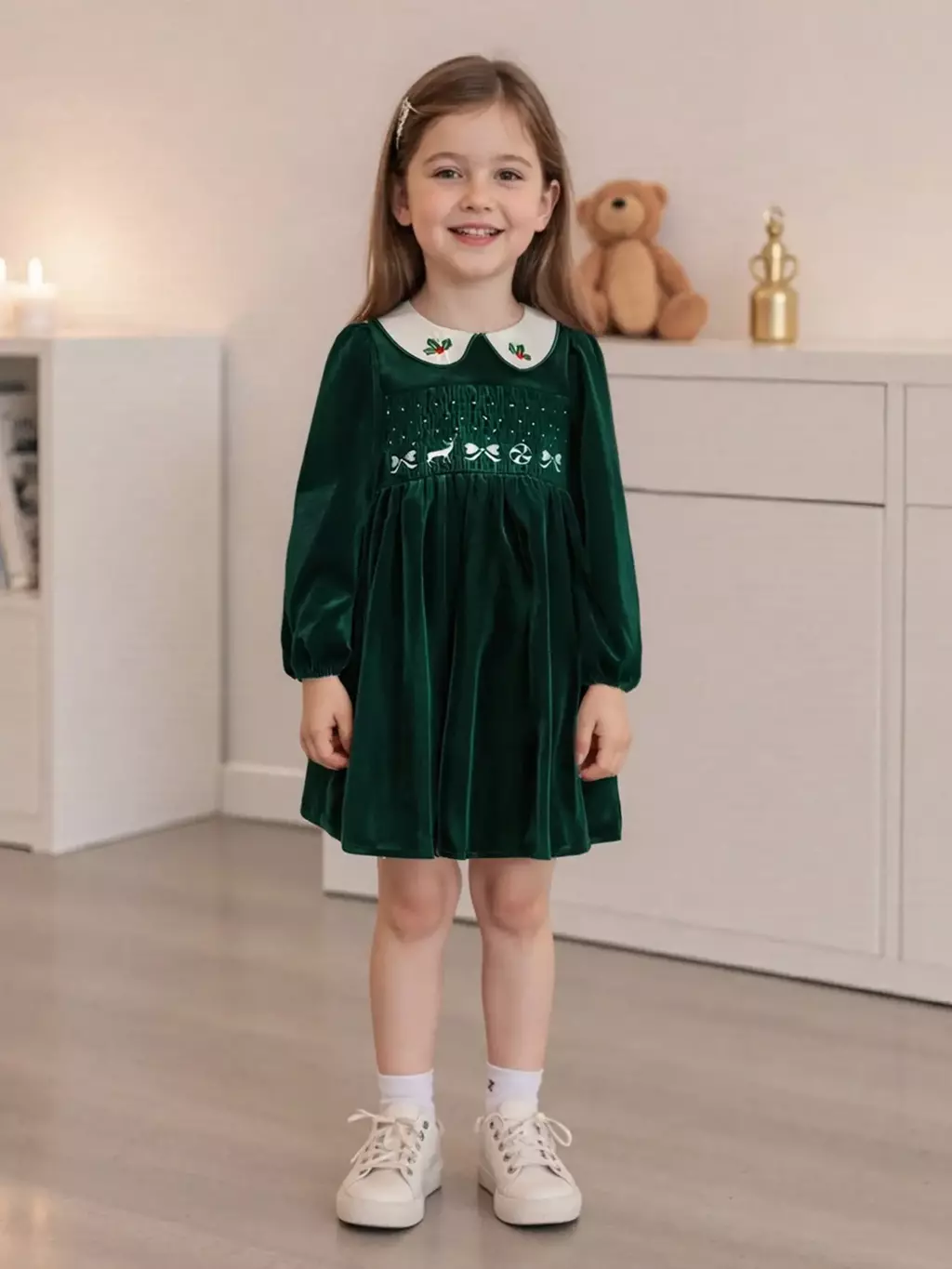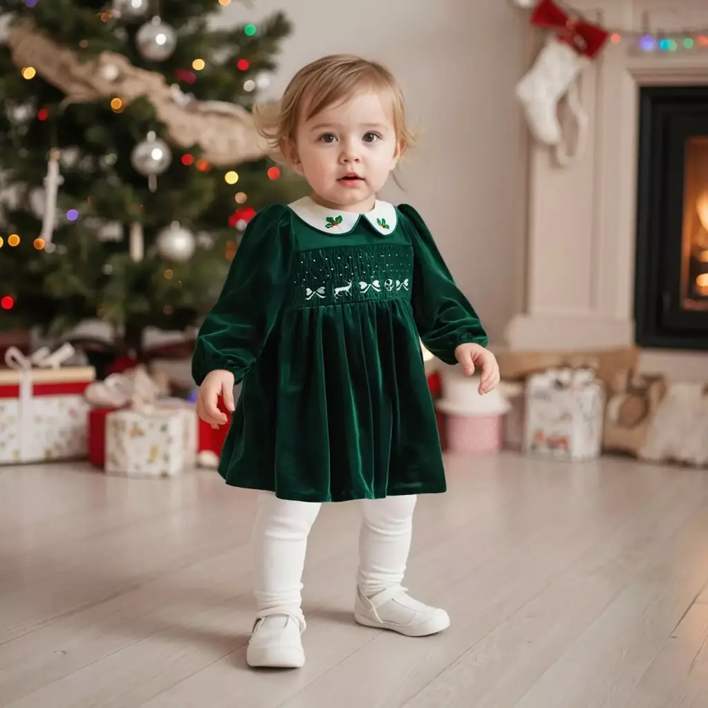 O Vestido de Natal de Veludo Menina é confeccionado com materiais de alta qualidade, proporcionando um toque suave e agradável à pele delicada das crianças. Seu design exclusivo e charmoso traz um toque de elegância, combinando perfeitamente com o clima festivo da época. As cores vibrantes e acabamento impecável farão sua pequena brilhar em qualquer celebração. ✨